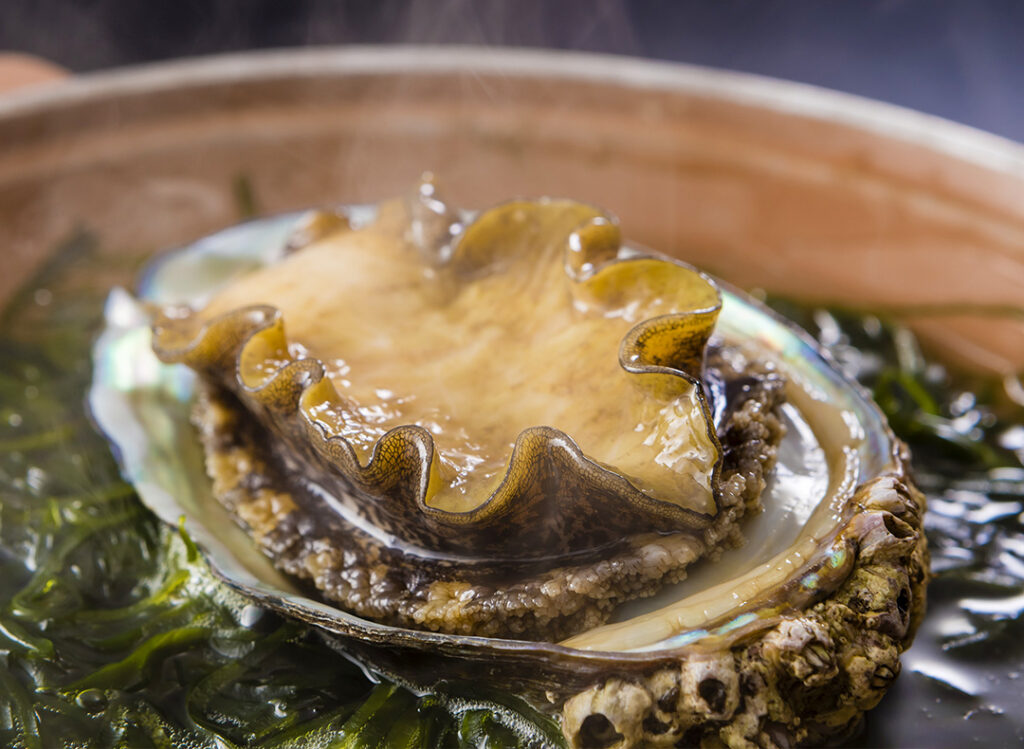 踊り焼きは、地元岩手産の新鮮なあわびをすき昆布の上で丁寧に蒸し焼きに仕立てます。2~3cmの肉厚な身は、もっちりとした食感とやわらかさを併せ持ち、噛むほどに広がる濃厚な旨みと甘みをお楽しみください。昆布の旨味と相まって、冬の寒さを忘れさせる至高の味わいです。